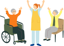 ご家庭で療養中の方で、あらかじめ曜日を決めて、当施設に日帰りでお越しいただき入浴・食事・レクリエーションやリハビリテーション等のご提供をさせていただきます。ご自宅と施設の間を送迎いたします。